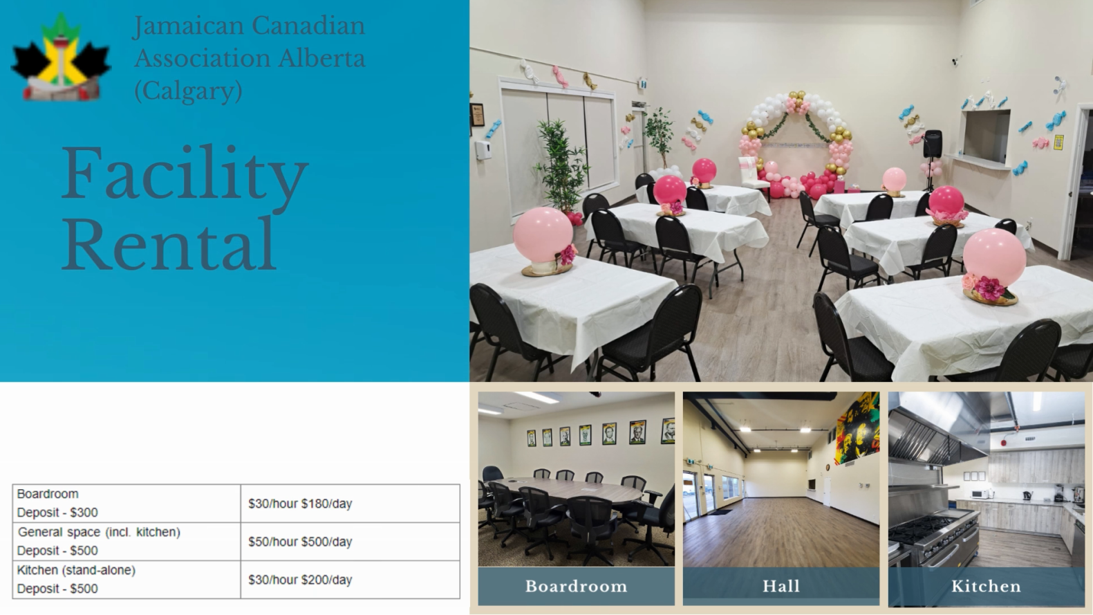 Our facility is available for rental. JCAA members receive a 10% discount. See rental rates here or email bookings@jcaalberta.ca or a call 403-775-1235 for more information.